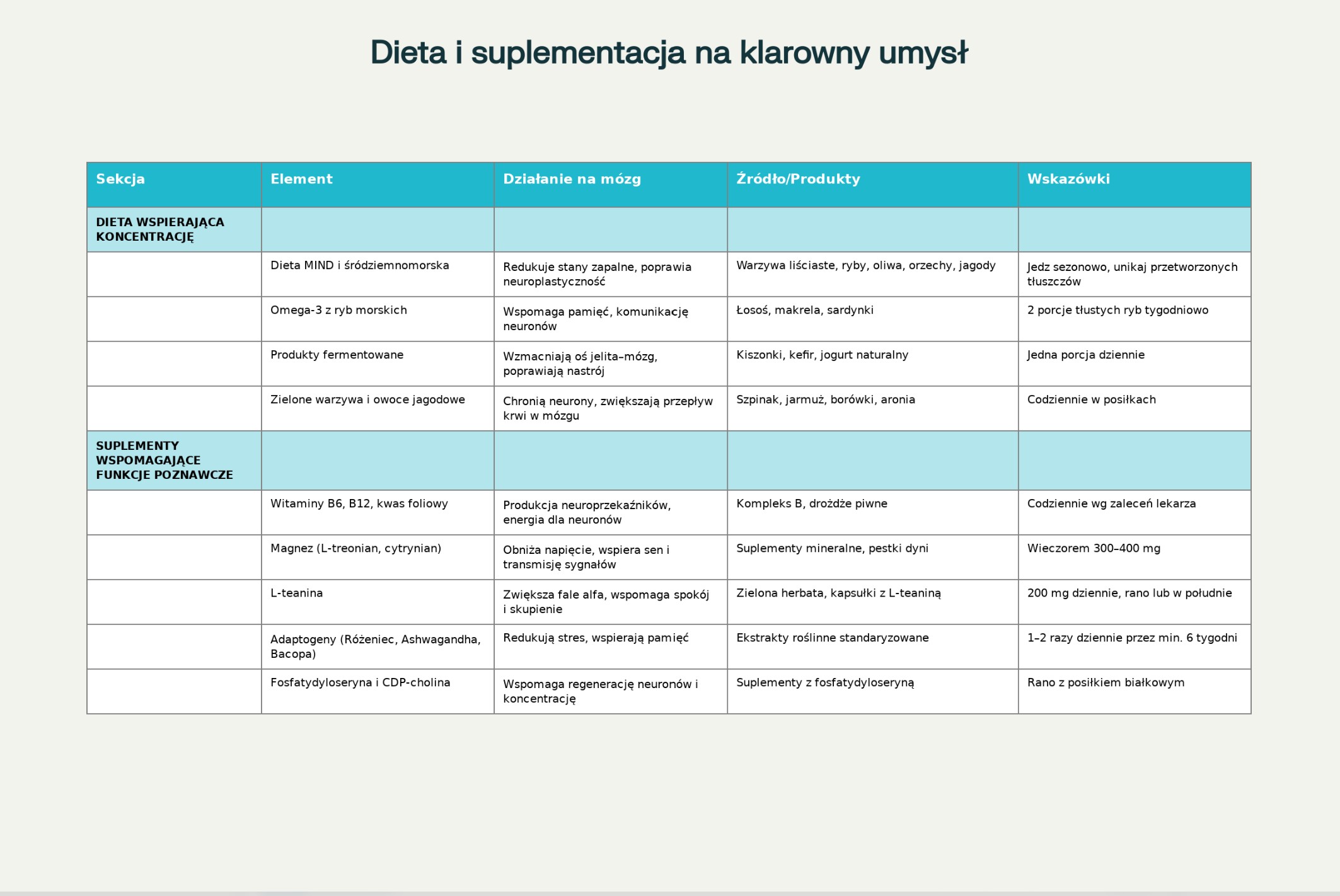 tu do pobrania przykładowa tabela stosowania suplementów